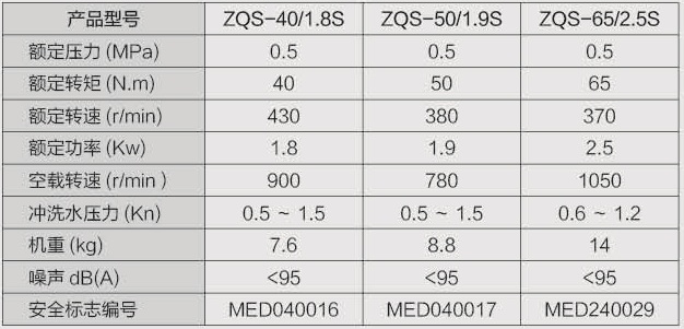 ZQS-40/1.8S、ZQS-50/1.9S、ZQS-65/2.5S气动手持式钻机技术参数